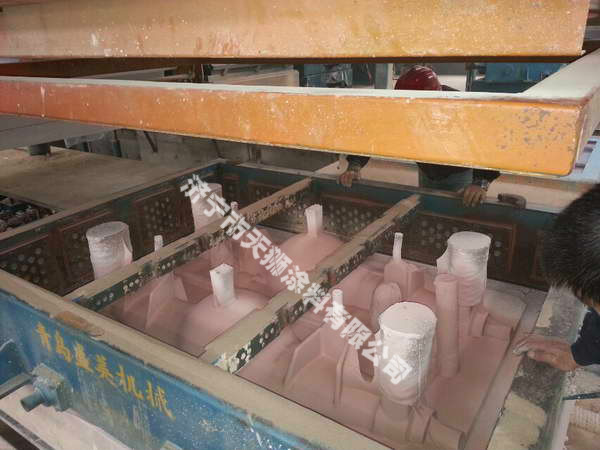 消失模涂料装置,该装置抽真空气压稳定,不易发生塌箱问题,有利于减少铸造事故,提高铸件质量,保护作业人员人身安全,底部出砂,不需要翻箱出砂,有利于延长砂箱使用寿命,且令型砂回收更有效率,有利于提高生产效率,不使用翻箱出砂亦减少了安全隐患,冷凝管有利于铸件及型砂的冷却,降低了铸件生产时间,有利于提高生产效率。